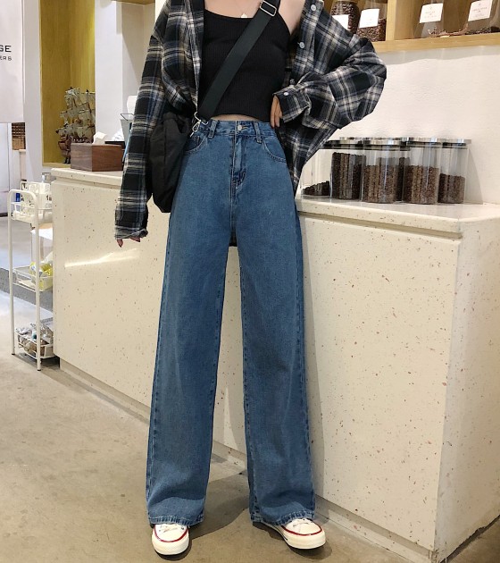 High Waist Jeans Women's Autumn 2022 New Large Size Loose Wide Leg Pants for Plump Girls Slimming Drape Mop Straight Pants