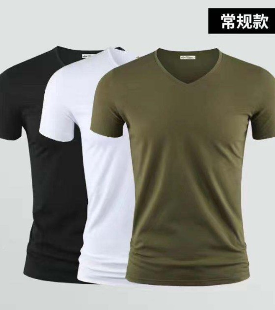 3vyy New Trendy Short Sleeve Pure Men's V-neck Half Underwear Undershirt T-shirt Body Sleeve Ice Silk Body Repair T-shirt 1/